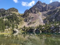 La ruta entre los dos refugios permite el encuentro con un paisaje fascinante de ibones que espejean bajo la mole del macizo del Posets o Llardana.