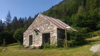 Se deja atrás la caseta que hay cerca del Ibonet (a la izquierda) para ir descendiendo hasta el parking de Estós.